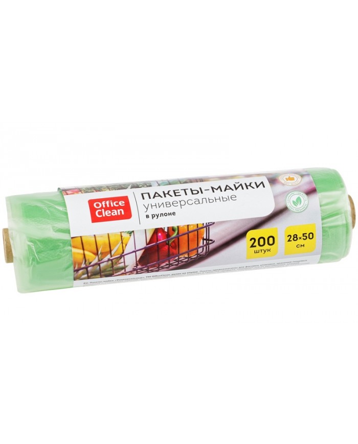 Пакет-майка OfficeClean, ПНД, 28+14*50см, 12мкм, рулон на втулке, 200шт., зеленый