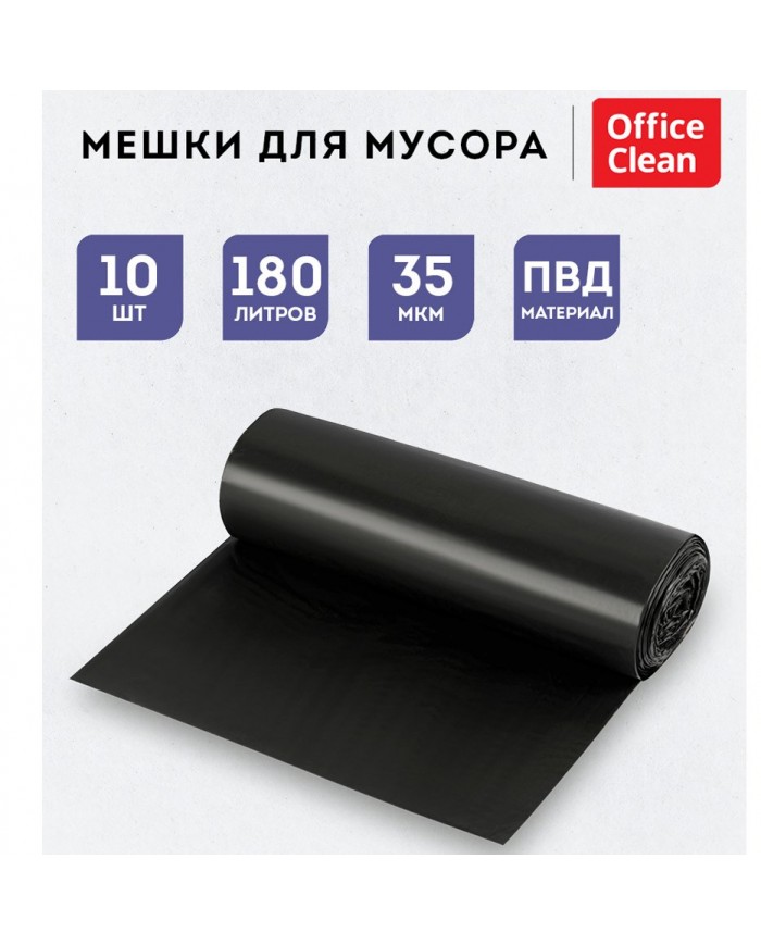 Мешки для мусора OfficeClean производятся из полиэтилена высокого давления (ПВД). Мешки объёмом 180 литров размера 90*110 см плотностью 35 мкм использ..