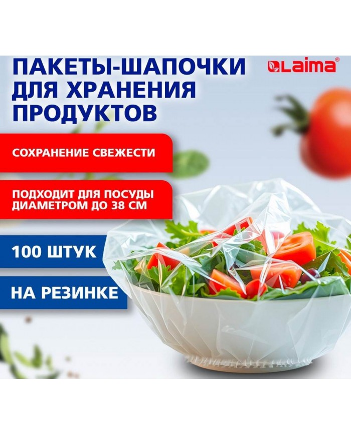 Пакеты-шапочки LAIMA Home подходят для тарелок, мисок, контейнеров, защищая еду от заветривания и посторонних запахов. Благодаря резинке они надежно ф..