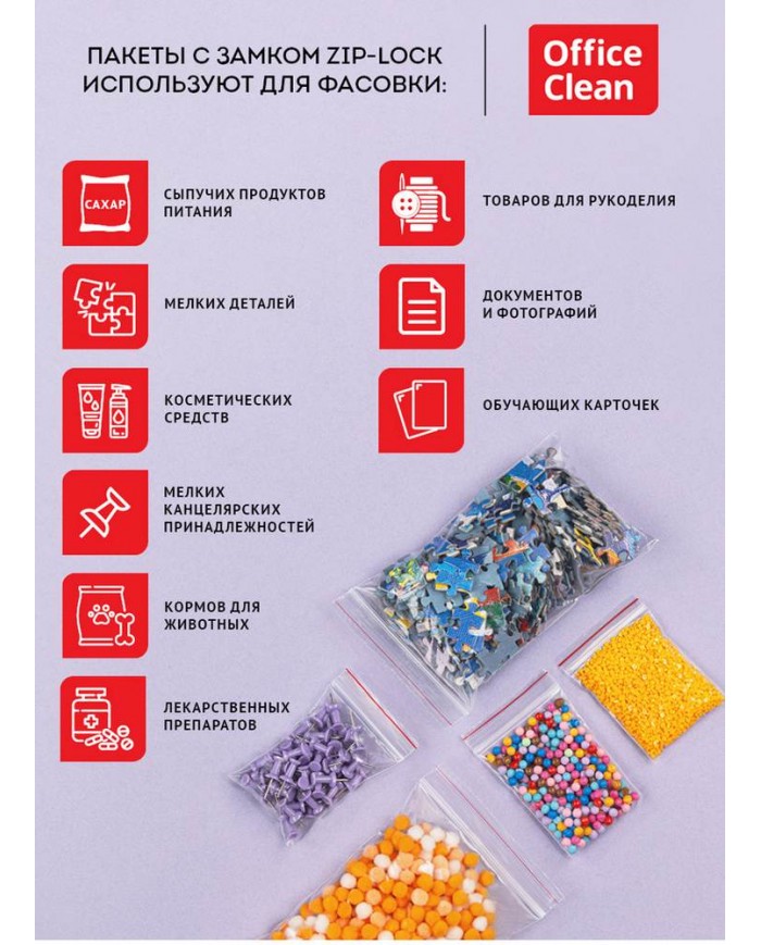 Пакеты с замком "Zip Lock" (100шт.) OfficeClean, 60*80мм, ПВД, 32мкм