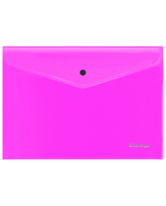 Папка-конверт на кнопке Berlingo "Neon" А4, 200мкм, прозрачная розовый неон