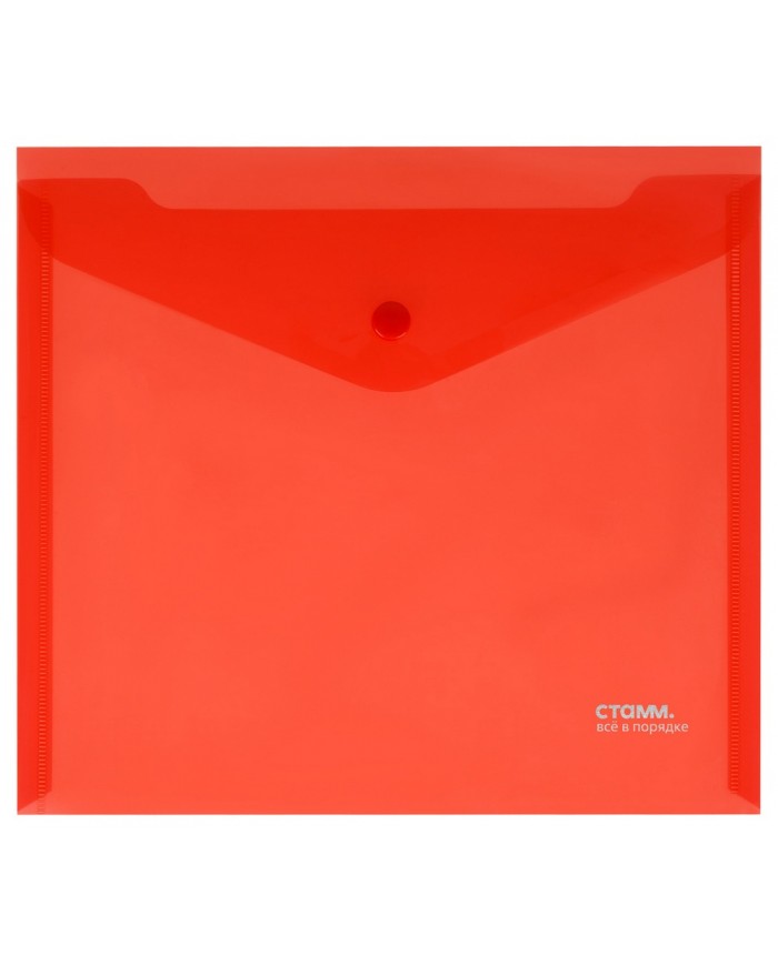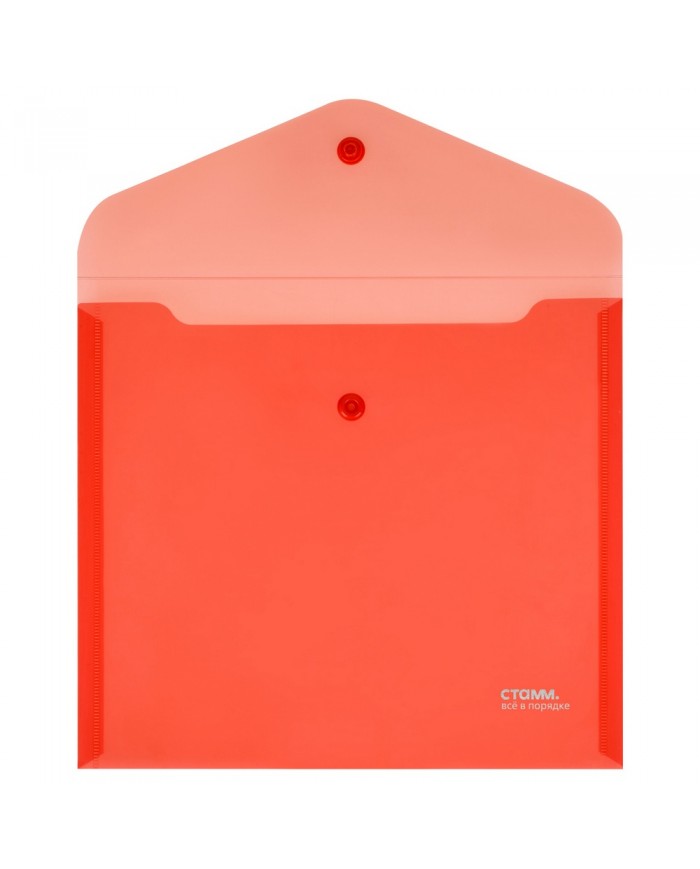 Папка-конверт на кнопке СТАММ А5+, 180мкм, пластик, прозрачная, красная