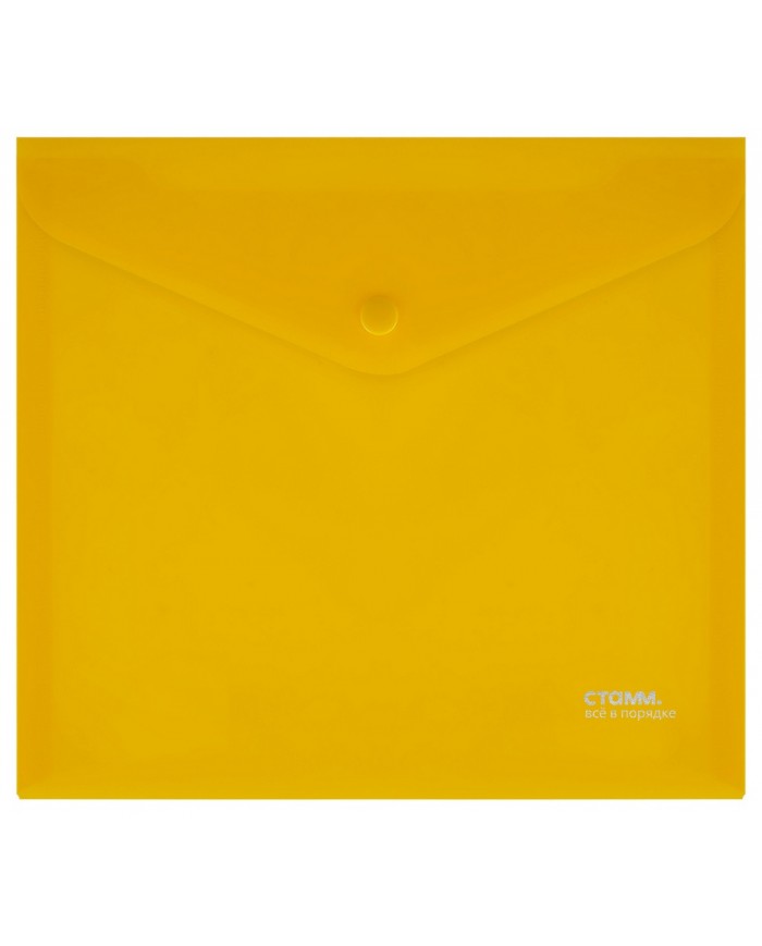 Папка-конверт на кнопке СТАММ А5+, 180мкм, пластик, прозрачная, желтая