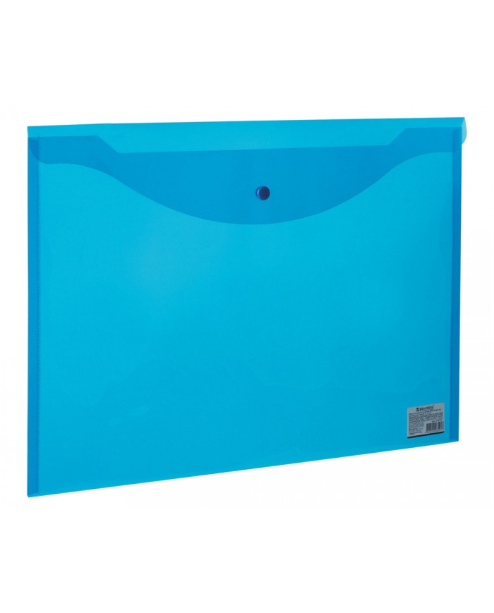 Папка-конверт с кнопкой А3 (305х435 мм), прозрачная, синяя, 0,18 мм, BRAUBERG