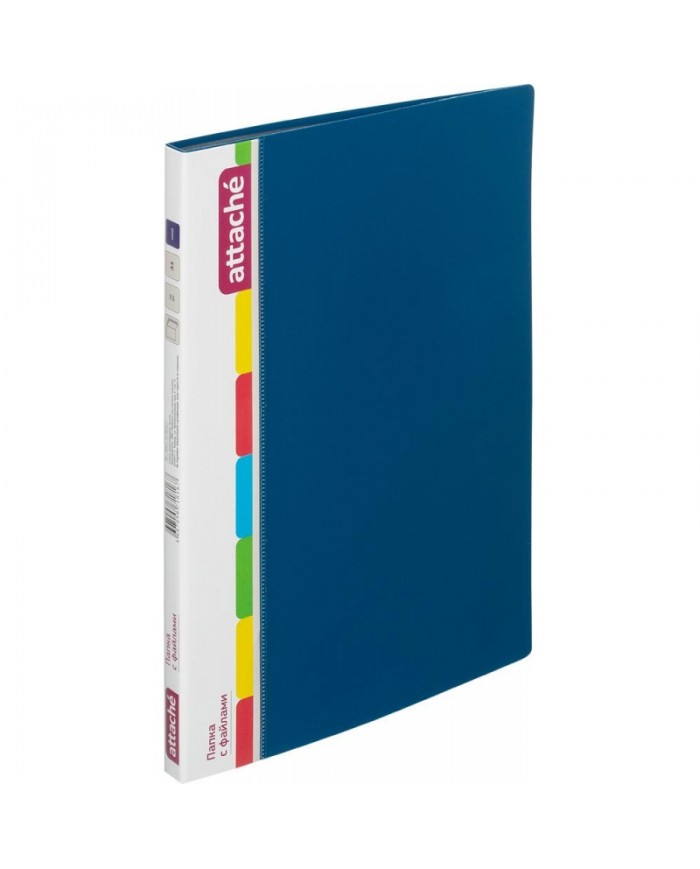 Папка с файлами Attache предназначена для хранения материалов и документов формата А4, требующих упорядоченности и наглядного обзора: отчетов, презентаций, коммерческих и персональных портфолио. Изготовлена из пластика толщиной 0,7 мм синего цвета, имеет 20 прозрачных вкладышей, а также карман на корешке для сменной этикетки. Вмещает до 40 листов стандартной плотности. Преимуществом файловой папки является надежная сохранность документов в отличном состоянии без предварительной перфорации. Плотность файлов 25 мкм.