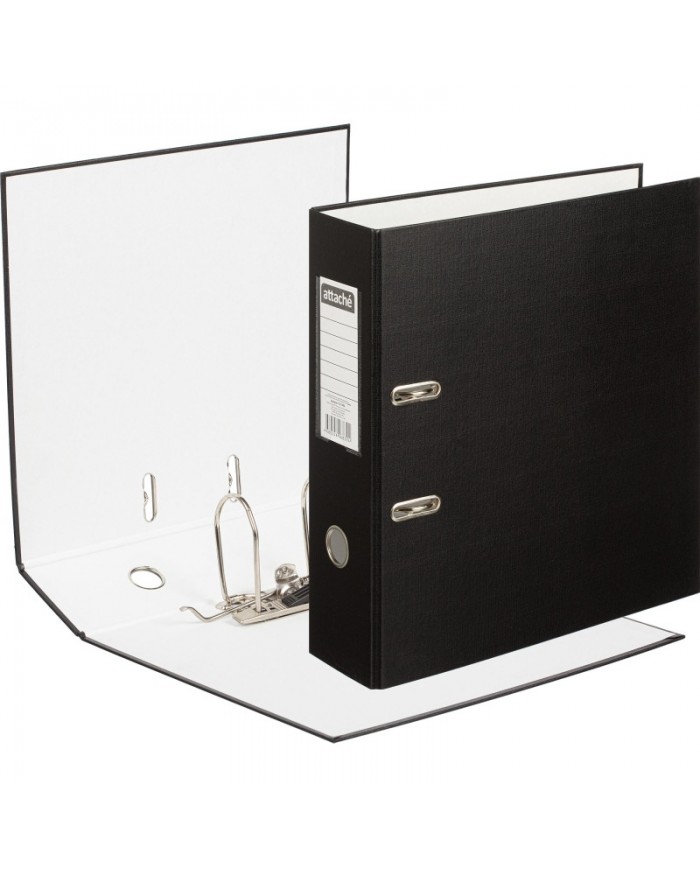 Папка-регистратор с арочн.механизмом, 90мм, черная, на корешке есть карман с этикеткой