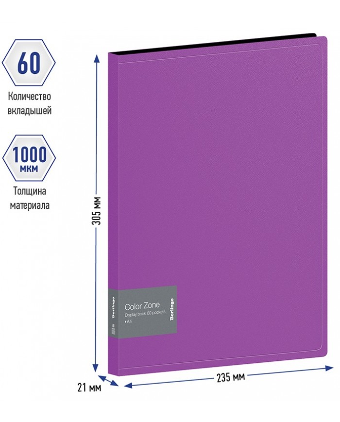 Папка с 60 вкладышами Berlingo "Color Zone" А4, 21мм, 1000мкм, фиолетовая