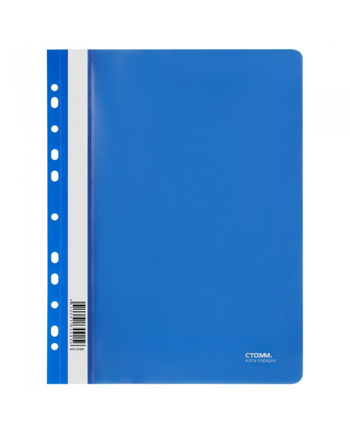 Папка-скоросшиватель пластик. перф. СТАММ А4, 180мкм, синяя с прозр. верхом