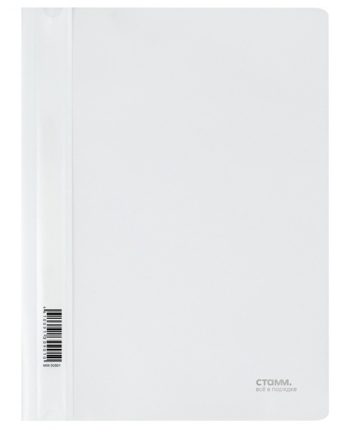 Папка-скоросшиватель пластик. СТАММ А4, 180мкм, белая с прозр. верхом