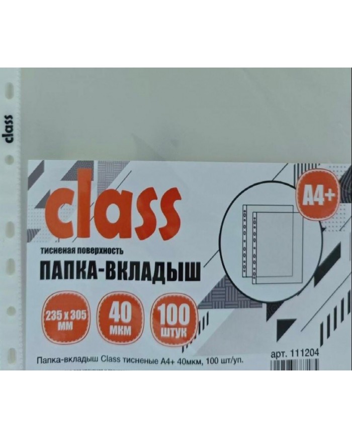 Папка-вкладыш (файлы) Class тисненые А4+, 40мкм, 100шт/уп.