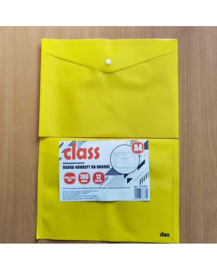 Папка-конверт на кнопке Class А4 180мкм, непрозрачная желтая
