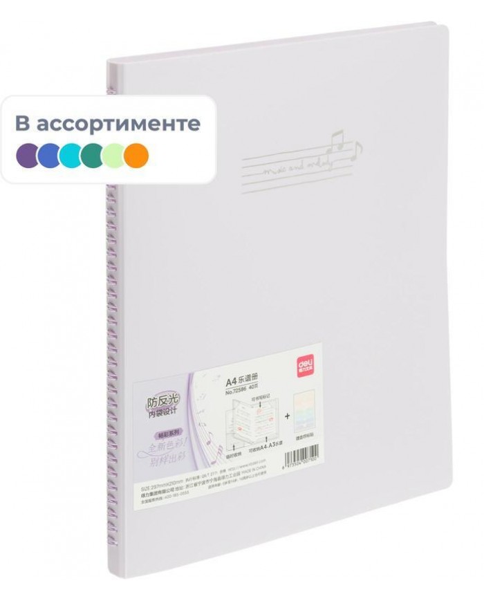 Папка файловая для нот с 30 прозр файлами A4 РР 0,8мм в ассортим