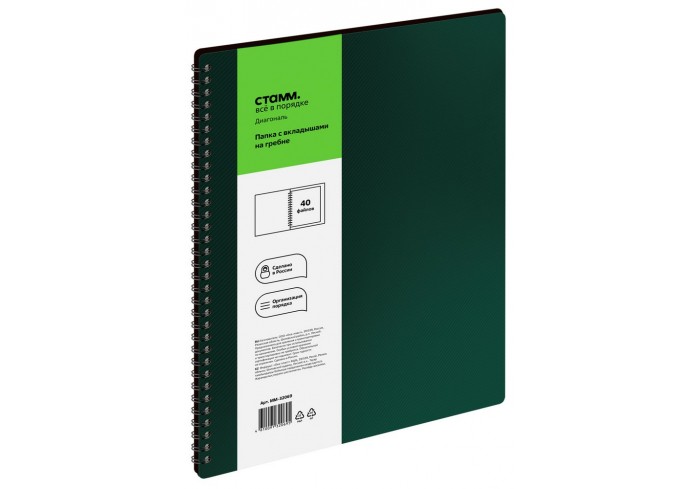 Папка с 40 вкладышами «СТАММ» серии «Диагональ» – отличный помощник для хранения бумаг формата А4. Внешняя сторона папки дополнена фактурным тиснением..