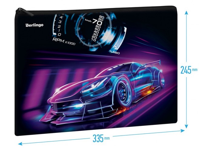 Папка текстильная на молнии Berlingo Neon car формата А4+ предназначена для хранения учебных принадлежностей. Папка для тетрадей размером 340*250 мм и..