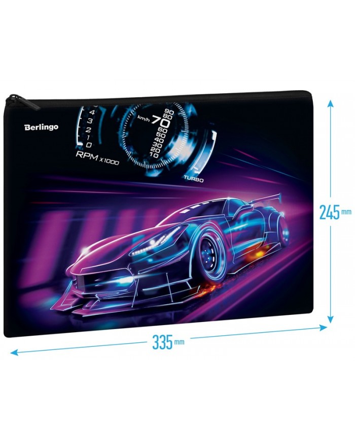 Папка текстильная 1 отделение, А4 Berlingo "Neon car", 340*250мм, полиэстер, на молнии