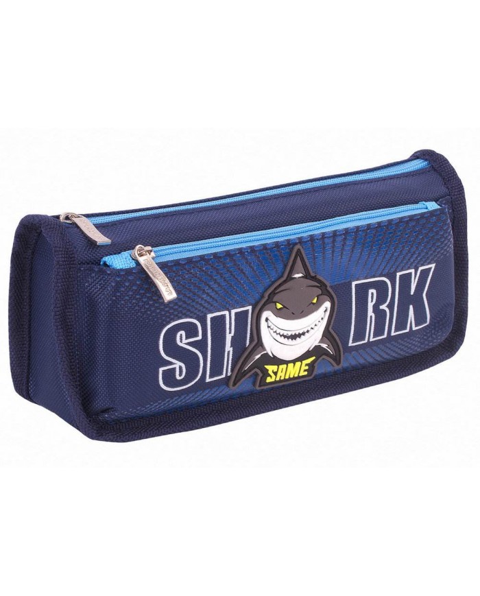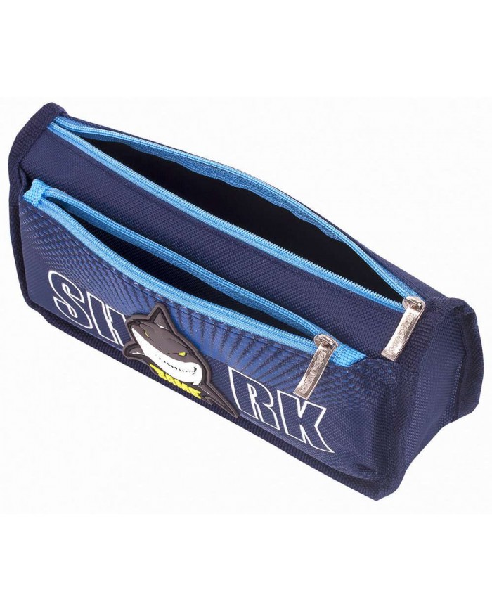 Пенал ЮНЛАНДИЯ, 2 отделения, полиэстер, "Shark", синий, 21х6х9 см, 270272