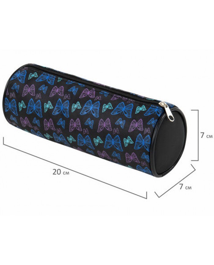 Пенал-косметичка BRAUBERG, Butterflies (Бабочки), черный, 20х7х7см