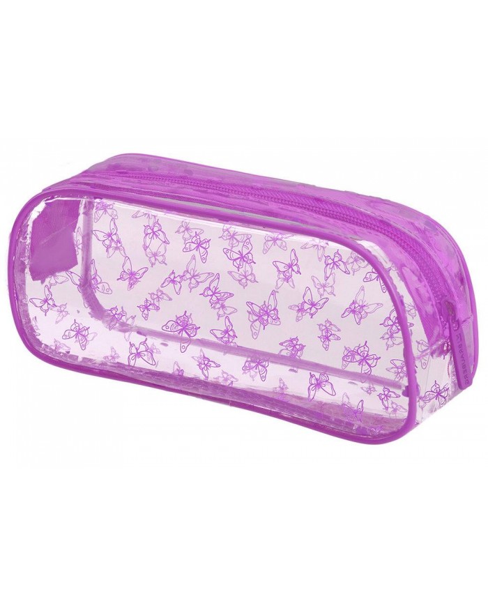 Пенал-косметичка BRAUBERG LUCENT на молнии, прозрачный, "Butterfly", 21х5х9 см,