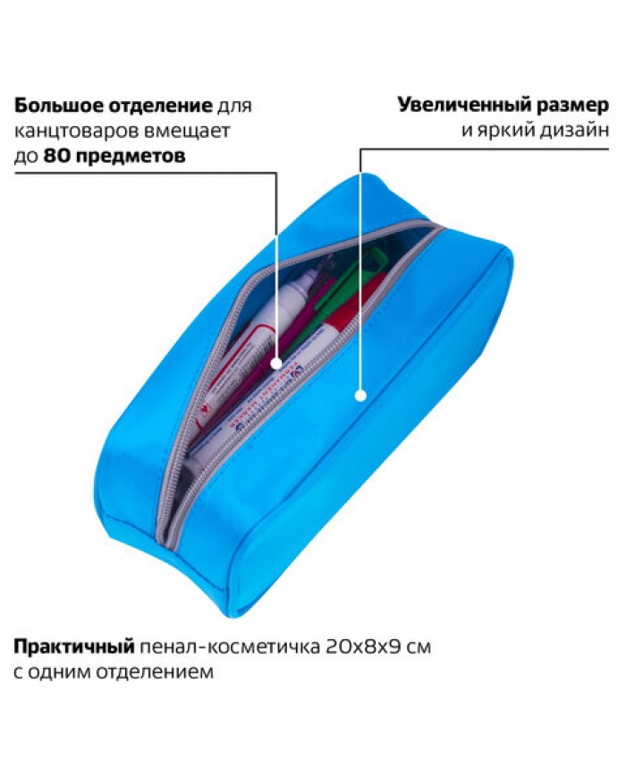 Пенал-косметичка BRAUBERG, мягкий, "KING SIZE BLUE", 20х8х9 см,