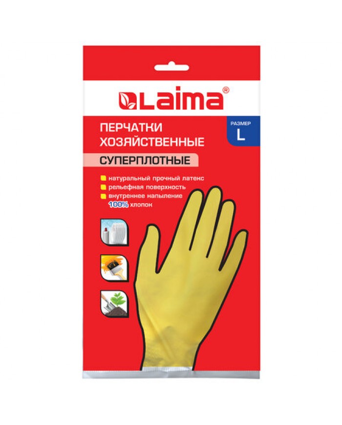 Перчатки хоз.латексные LAIMA "Премиум", МНОГОРАЗОВЫЕ, хлопчатобумажное напыление, суперплотные, L