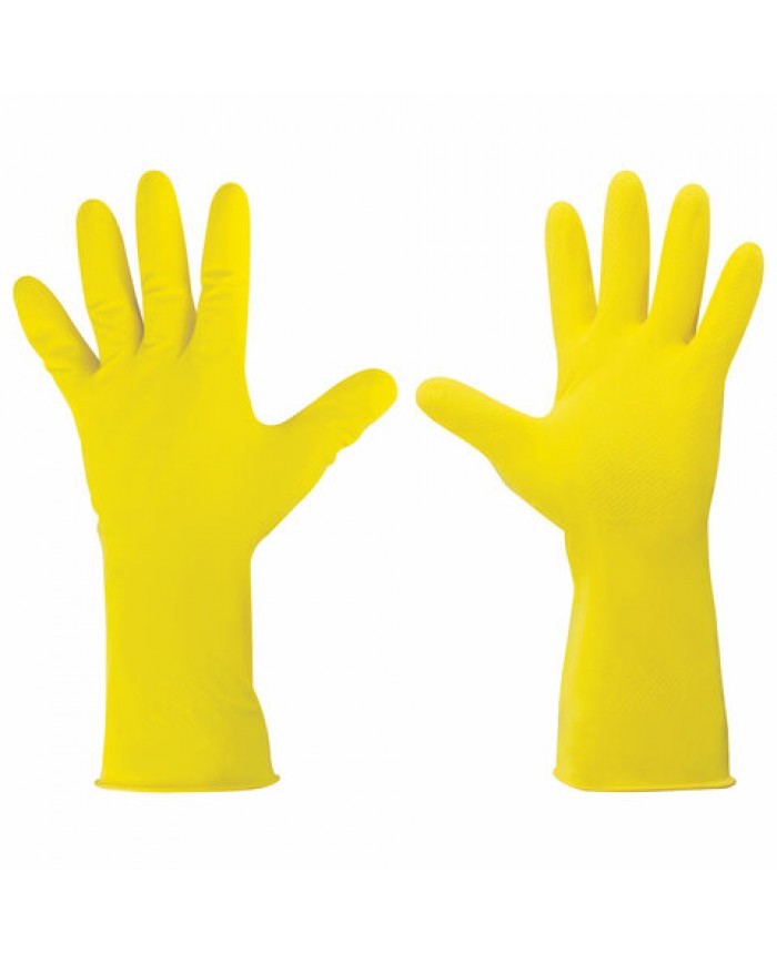 Они изготовлены из прочного латексного материала, что гарантирует защиту рук от механических внешних повреждений. Классический размер L подойдет на руку стандартного размера. В комплекте - 1 пара. Внутреннее хлопчатобумажное напыление обеспечивает гипоаллергенность и гигроскопичность. Рельефная поверхность препятствует скольжению предметов. Тип манжеты: закатанный край. Нельзя использовать при работе с растворителями и электрическим током. Данные перчатки многоразовые. Цвет - желтый.