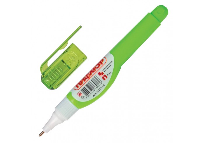 Компактный объем 4 мл без труда помещается в пенал. Корректирующая ручка позволяет аккуратно исправлять ошибки в документах, при письме в тетрадях. Ра..
