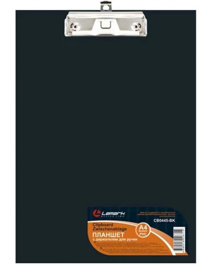 Планшет с верх.зажимом, с держателем для ручки, А4, PVC, черный