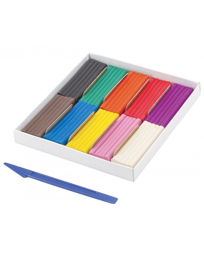 Пластилин восковой, со стекой, не пачкает рук, не оставляет жирных пятен. 10 цветов, 123 г. В картонной коробке с европодвесом..