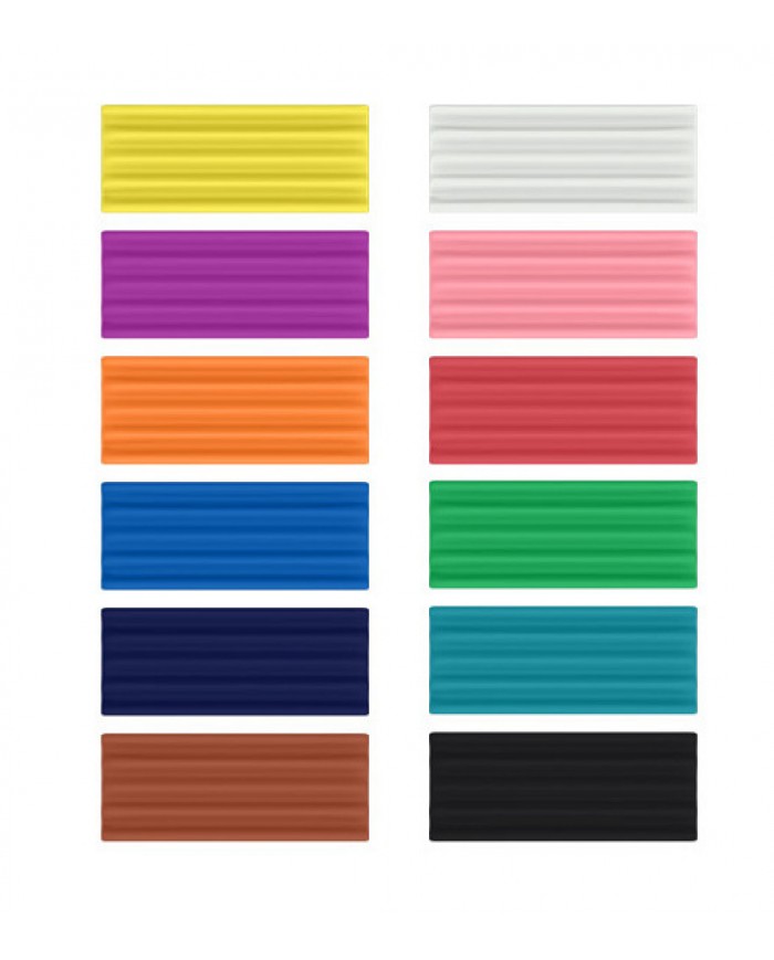 Пластилин восковой, со стекой, не пачкает рук, не оставляет жирных пятен. 12 цветов, 147 г. В картонной коробке с европодвесом..