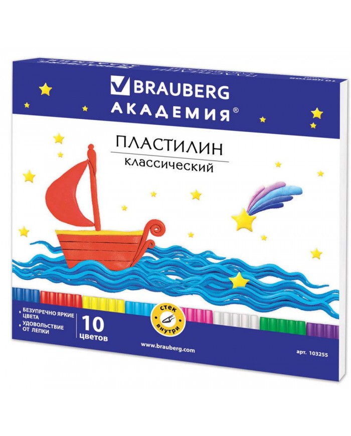 Яркие и насыщенные цвета вызовут у детей исключительно положительные эмоции. Разнообразие 10 цветов поможет ребенку создать поистине уникальную поделку, миниатюрную скульптуру или картину. Масса набора - 200 г. Со стеком. В него входит 10 брусков по 20 г различных цветов: белый, желтый, оранжевый, розовый, красный, зеленый, синий, сиреневый, коричневый, черный. Пластилин BRAUBERG обладает высоким качеством, прекрасными пластичными свойствами и мягкостью, легко принимает нужную форму. Не токсичен, безопасен для детей. Производится из белой глины (каолина) с добавлением вазелина, натурального воска, парафина.