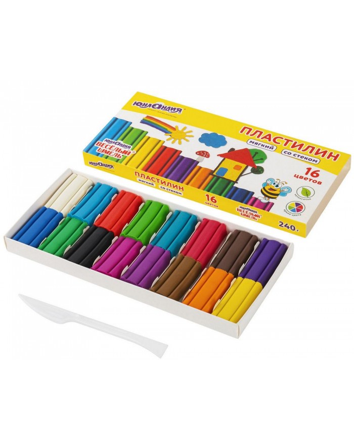 Пластилин ЮНЛАНДИЯ "ВЕСЕЛЫЙ ШМЕЛЬ" обладает высокой пластичностью, поделки из него прекрасно сохраняют форму. Цвета пластилина легко смешиваются друг с другом, что позволяет развивать фантазию ребенка и мелкую моторику рук. В составе набора 16 цветов: белый, черный, синий, красный, желтый, зеленый, коричневый, оранжевый, голубой, светло-зеленый, фиолетовый, лиловый, cветло-коричневый, темно-красный, бирюзовый, сиреневый. Масса набора - 240 г. Поставляется в комплекте со стеком, с помощью которог
