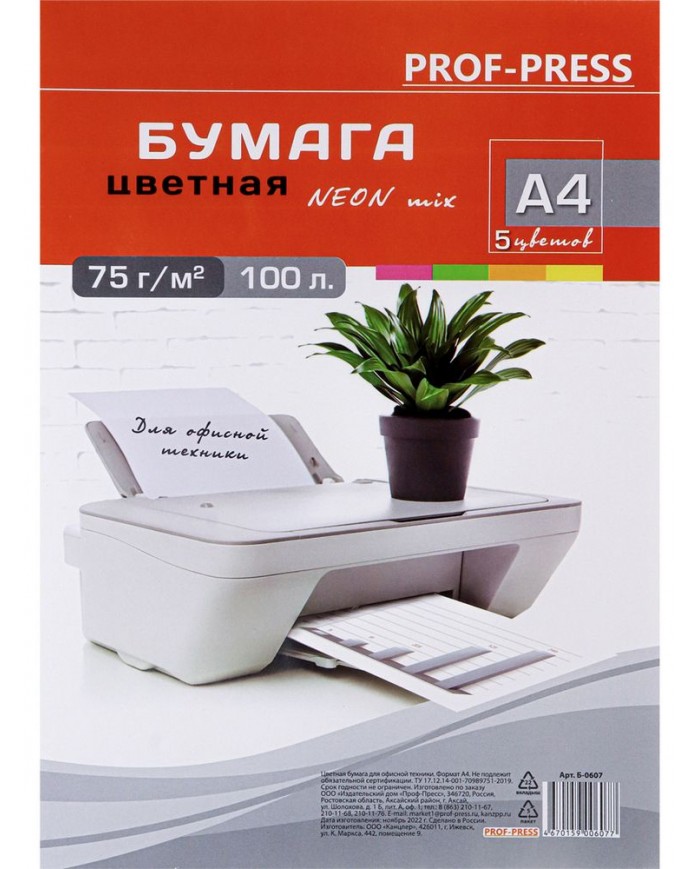 Бумага цветная А4 для офисной техники neon mix, 100 л. (5 цветов 20л.) 75 г