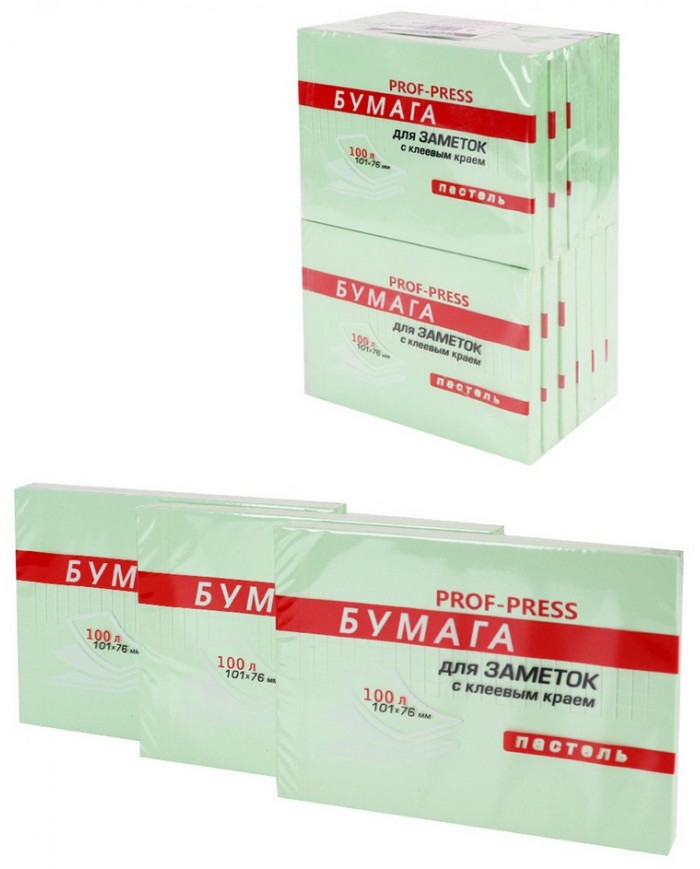 Бумага для заметок с клеевым краем ЗЕЛЕНАЯ пастель, 101Х76 мм, 100л,