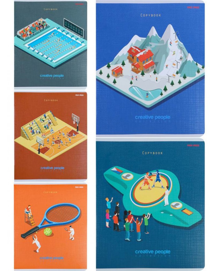 Тетрадь 48 л, А5 КЛЕТКА СПОРТ И КРЕАТИВ цветная мелов. обл., лён