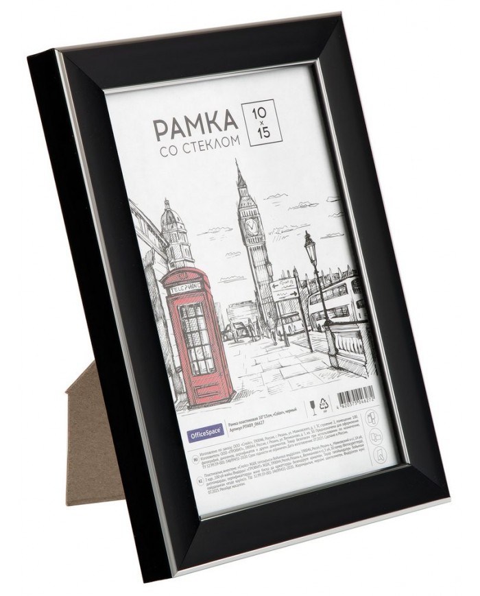 Рамка пластиковая 10*15см, OfficeSpace "Color", черный