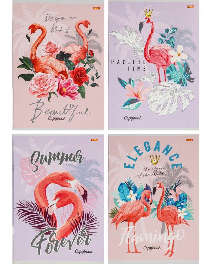 Тетрадь 96 л А5 клетка  ГРАЦИОЗНЫЕ ФЛАМИНГО, обложка-мелов. картон, внутренний блок-серый,  145х203 - 5 %