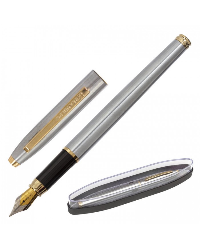 Ручка подарочная перьевая BRAUBERG "Brioso", СИНЯЯ, корпус серебристый с золотистыми деталями,