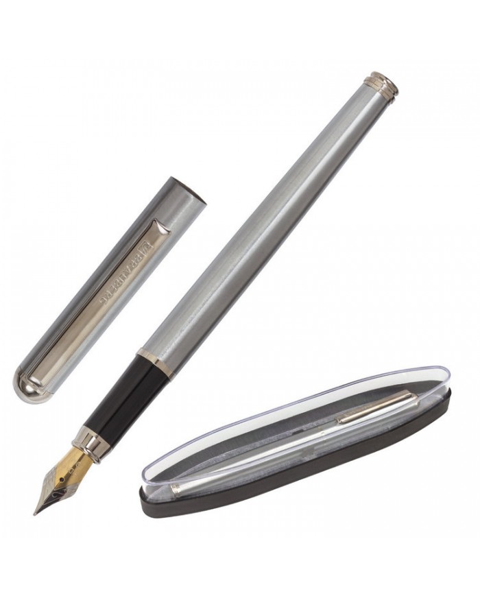 Ручка подарочная перьевая BRAUBERG "Larghetto", СИНЯЯ, корпус серебристый с хромированными деталями,