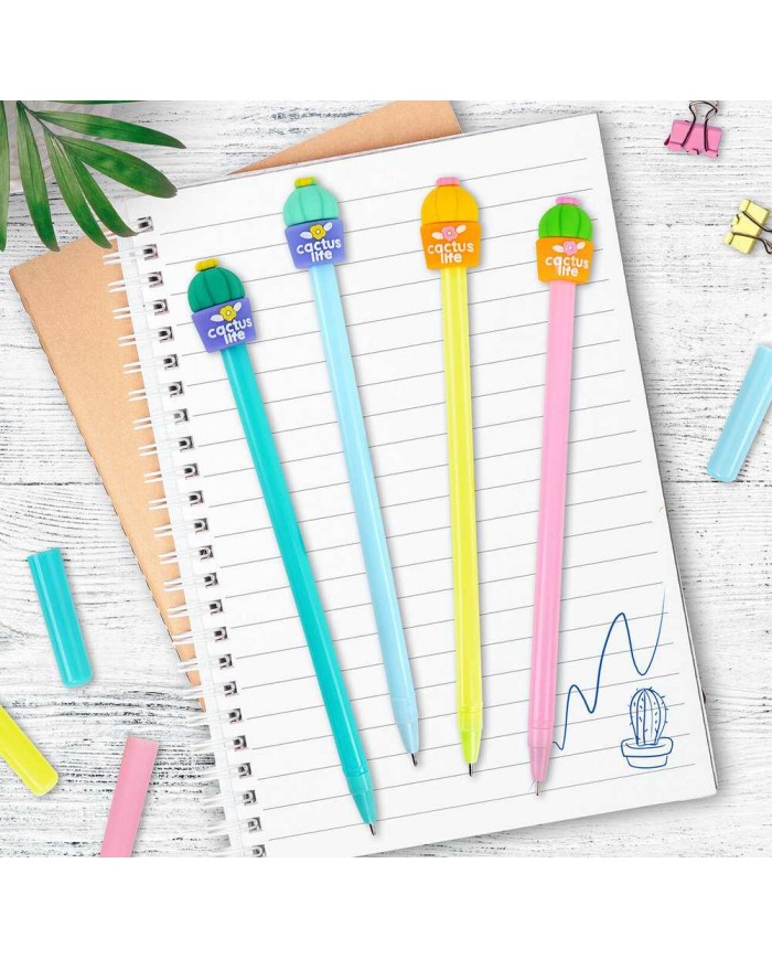 Ручка с топпером шариковая ЮНЛАНДИЯ "Кактус", корпус ассорти, СИНЯЯ, пишущий узел 0,7 мм,