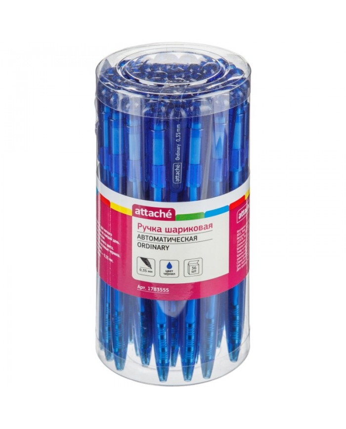 Ручка шариковая автомат. Attache Ordinary,107мм, маслян. игольч., 0,35мм,синяя