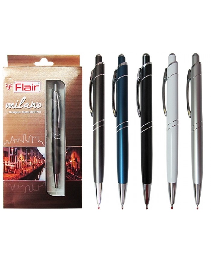 Ручка шариковая автоматическая Flair MILANO, с синими чернилами на масл.основе, метал.корпус, 0,7мм