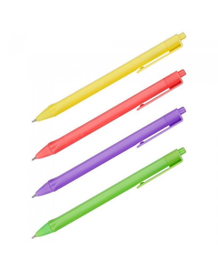 Шариковая автоматическая ручка OfficeSpace Juicy Trio – это помощник для учёбы и работы, который каждый день дарит яркое настроение. Ручка представлена с игольчатым наконечником. Диаметр пишущего узла составляет 0,7 мм, поэтому ручка прекрасно подходит для любого стиля письма. Толщина линии письма составляет 0,5 мм, обеспечивая изящный и красивый почерк. Длина письма – 350 метров. Код сменного стержня – 248290. Длина ручки – 141. Яркий корпус представлен в четырёх сочных цветах. Удобная трехгранная форма корпуса позволяет ручке комфортно лежать в руке. Благодаря клипу модель можно закрепить на одежде, тетради или ежедневнике. Кнопочная подача стержня обеспечивает дополнительное удобство при работе. Ручки упакованы в картонную коробку.