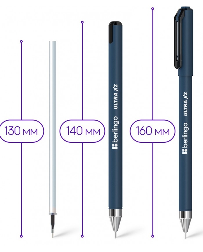 Шариковая ручка Berlingo Ultra X2 со строгим матовым корпусом и серебристым наконечником будет по душе тем, кто ценит стиль и заботится о своём комфорте. Увеличенный запас чернил обеспечивает запас письма 2 000 метров. Пластиковый клип позволяет разместить ручку в любом месте, где это необходимо. Диаметр пишущего узла составляет 0,7 мм, благодаря чему ручка прекрасно подходит для любого стиля письма.
