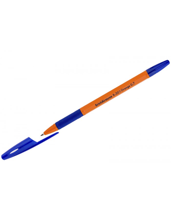 Ручка шариковая масляная Erich Krause "R-301 Orange" синяя, 0,7мм, 140мм, грип