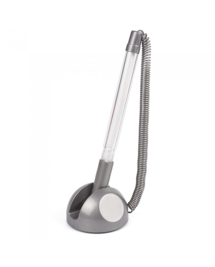 Ручка шариковая настольная BRAUBERG "Стенд-Пен", СИНЯЯ, пружинка, корпус серебристый, линия письма 0