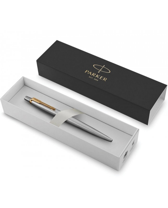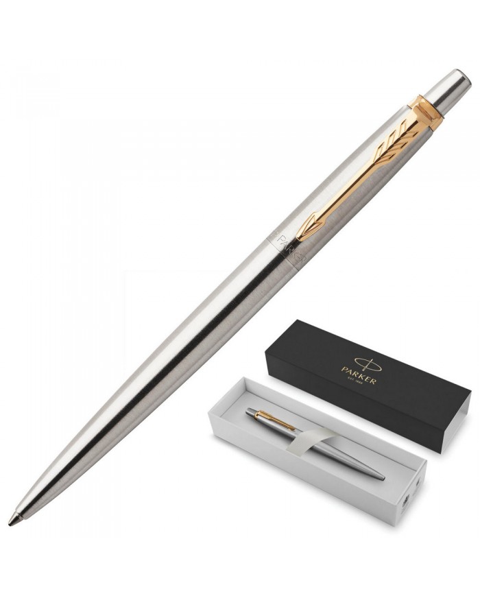 Ручка шариковая PARKER "Jotter Core Stainless Steel GT", корпус серебро, позолота, синяя,
