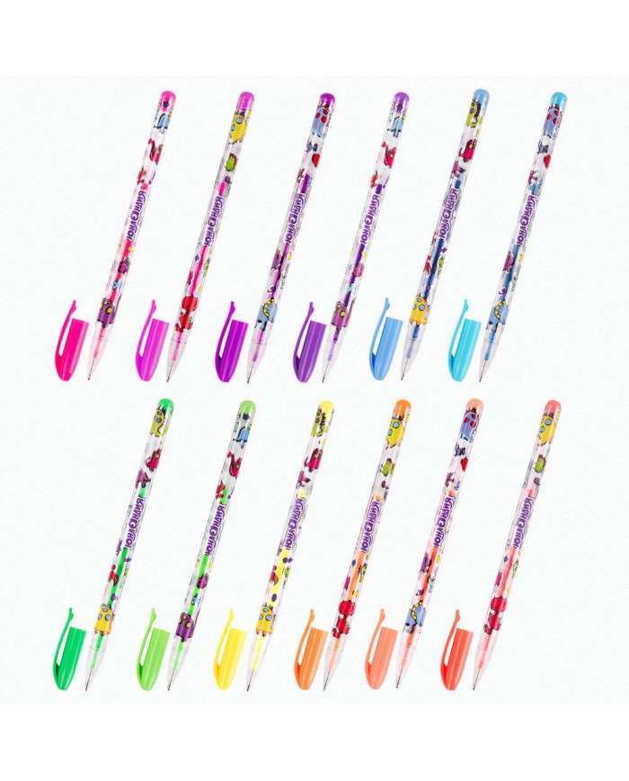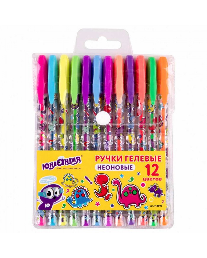 Ручки гелевые ЮНЛАНДИЯ, НАБОР 12 ЦВЕТОВ, НЕОН, корпус с печатью, узел 0,7 мм, линия письма 0,5 мм,