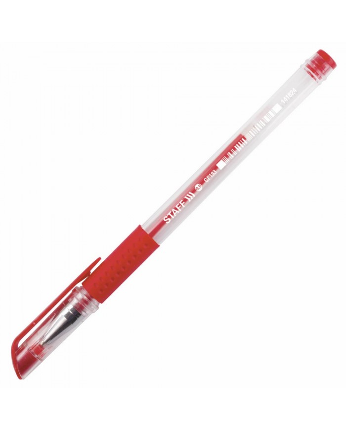 Гелевая ручка красного цвета с полупрозрачным корпусом. Ручка пишет легко и быстро, не требует нажима. Резиновая манжета предотвращает усталость кисти..