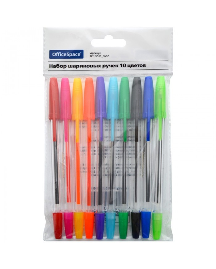 Набор шариковых ручек OfficeSpace, 10шт., 10цв., 1,0мм, европодвес