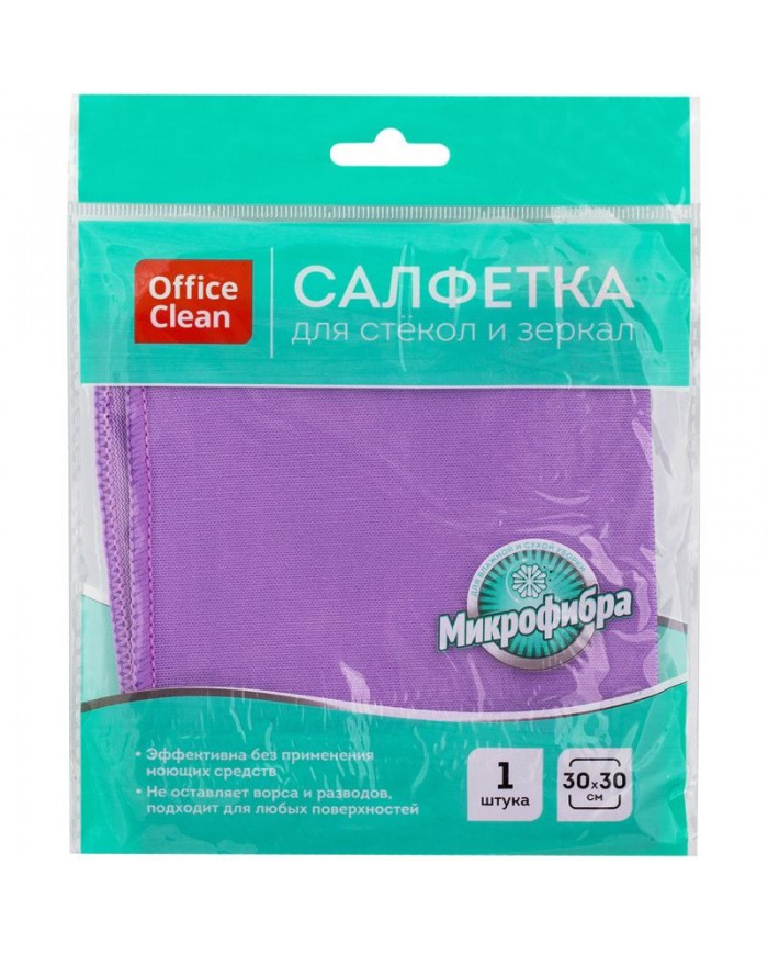 Салфетка для стекол и зеркал OfficeClean, плотная микрофибра, 30*30см, фиолетовая